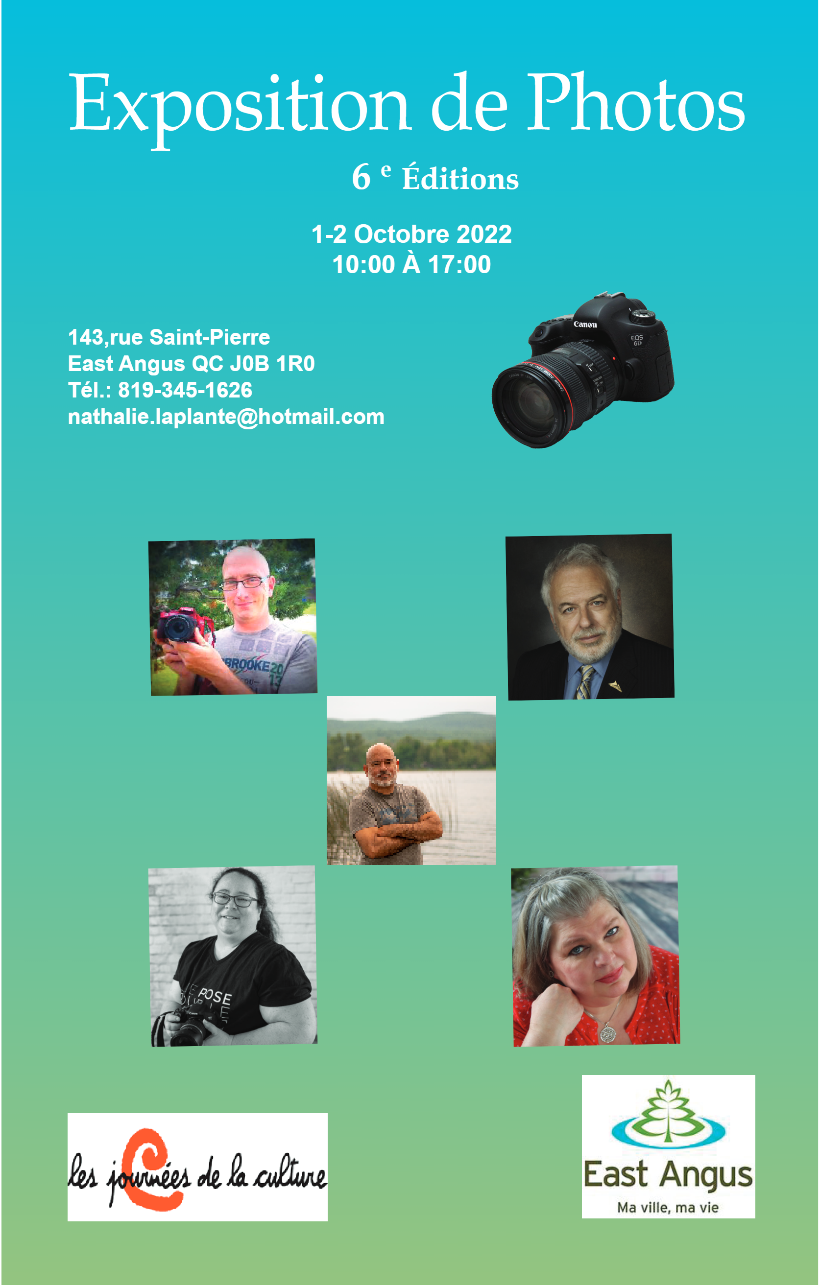 1 octobre 2022 - 10 h 00 à 17 h 00 Recurring Exposition de photos – Journée de la culture Salle communautaire des Chevaliers 143, rue Saint-Pierre,East Angus,Québec,Canada